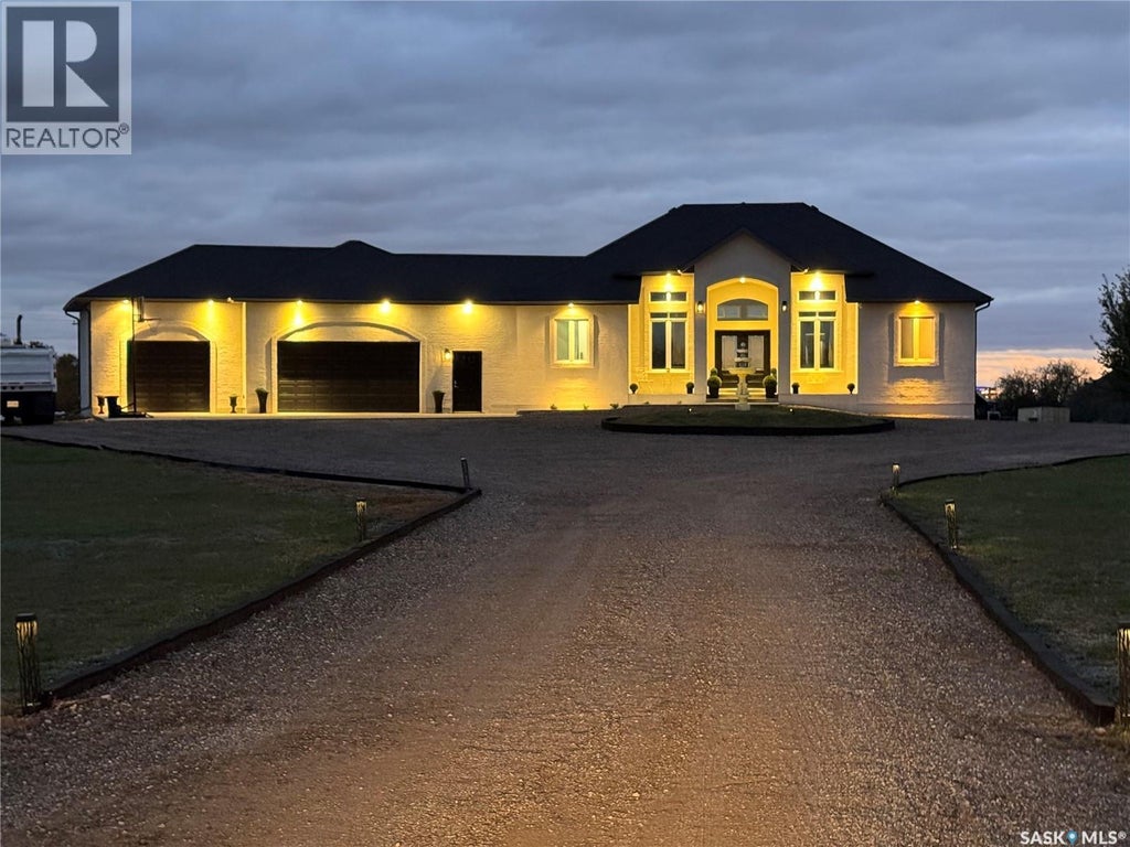 This peaceful 3.5 acre retreat features a sprawling walkout bungalow with close to 4,800 sq ft of living space designed for luxurious country living, yet still close to city amenities. Bright open-concept layout with high ceilings and lots of windows allowing for plenty of natural sunlight. The gourmet kitchen showcases elegant cream cabinetry, granite countertops and high-end stainless steel appliances, along with a convenient kitchen sweep, and walk-in pantry. A spa-inspired primary bedroom has cozy fireplace and direct access to the back deck, also features a relaxing jetted tub and a huge walk-in closet complete with custom built-in dressers. Second bedroom on main floor would also make a great home office. Main floor laundry room is thoughtfully designed with plumbing and electrical setup for a potential conversion into a nail or hair salon. Walkout basement is ideal for entertaining or multi-generational living, with room for theatre seating and hook up for potential bar or kitchenette. 3 bedrooms with large windows, 2 bathrooms, a workout room and furnace room complete the basement. No shortage of storage space in this home! Comfort is elevated with in-floor heating in all of the bathrooms. Garage floor and basement floor have separate boiler system, which would also work to heat potential swimming pool. Oversized triple-car garage provides ample storage and workspace with heated floor and 220 amp service. Large driveway for plenty of parking space and eco-friendly driveway constructed from recycled highway asphalt. Step out onto the expansive deck, perfect for morning coffee or evening sunsets, surrounded by nature, this property offers tranquility, space, and sophistication! (id:36535)
