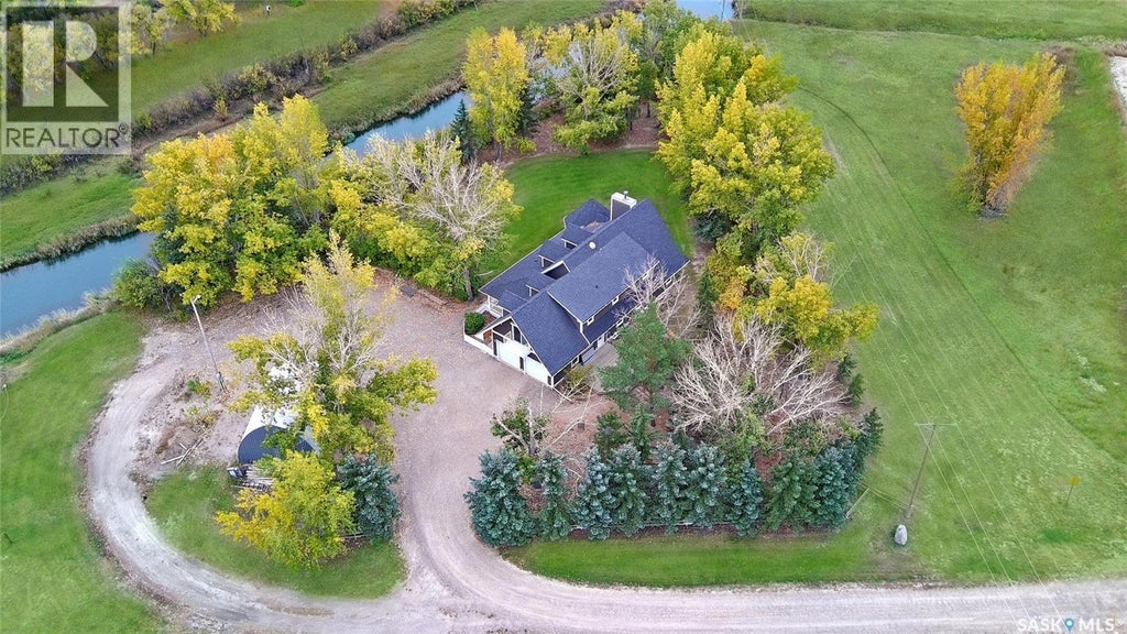 Discover an exquisite blend of privacy and convenience with this luxurious "in city" acreage. Nestled on the eastern edge of the city, this picturesque 1.5-acre property is enveloped by a lush shelter belt and bordered by a serene creek, offering stunning views. The craftsman-style home exudes charm with its elegant wraparound veranda, second-story dormers, and expansive windows that flood the interior with natural light.Upon entering, you'll be greeted by a graceful staircase leading to the second floor. To one side is a sitting room, the other side hosts a fully renovated eat-in kitchen and dining area. The kitchen features rich cabinetry, Stone countertops, a large island with seating, and SS appliances, all overlooking the beautiful yard. The main floor also includes a bedroom/office, a newly renovated bathroom, and a large laundry room that connects to the breezeway and a heated double car garage.The second floor boasts a charming bonus room with open-beam construction and a balcony overlooking the yard. Two additional bedrooms and a guest bath are located in the opposite wing. The master suite is a true highlight, featuring window seats, a closet spanning the entire wall, a private balcony, and a newly renovated five-piece en suite with a standalone tub and walk-in shower.The lower level offers a large family room, a fifth bedroom, a renovated three-piece bathroom, and an oversized utility/storage room. The home equipped with a zoned furnace(2024), two water heaters (one dedicated to floor heating in the garage and kitchen), central air and shingles installed(8 years ago). Additional updates include vinyl siding, triple-pane PVC windows, fresh paint throughout, and updated trim. The property is connected to city power and water, with a newly replaced septic tank and pump.Outside, the veranda leads to a fully enclosed hot tub room with panoramic windows. The property also includes an additional shop, a cozy fire pit area, and an additional back deck. As per the Seller’s direction, all offers will be presented on 11/01/2025 12:01AM. (id:36535)