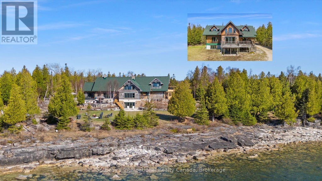 Welcome to "The Estate on Michael's Bay", one of the most exclusive properties on Manitoulin Island - an exceptional 116-acre waterfront estate featuring 928 ft of pristine shoreline on the crystal-clear waters of Lake Huron. The estate consists of a 9,000 sq ft log home, a 3,000 sq ft guest house, a 3,600 sq ft heated workshop, a private 2,500 ft airstrip and a private lake. Minutes from South Baymouth and just 85 minutes by plane from Toronto, this gated property offers ultimate privacy, convenience, and luxury. At the heart of the estate lies a breathtaking main residence that blends timeless log construction with concrete floors and radiant in-floor heating. A dramatic, floor-to-ceiling 4-sided wood-burning stone fireplace anchors the vaulted great room, surrounded by living, music, study, and sitting areas. The breakfast nook offers a place to relax in front of a wood-burning fireplace. The kitchen features a waterfall island, hidden pantry, wine cooler, Thor appliances, and beamed ceilings. A mud/laundry room, a guest suite with ensuite, and a 2-piece bath complete the main floor. Upstairs, a floating staircase with glass railing leads to the primary suite's sitting area, 6-piece ensuite with soaking tub, double showers, dual vanities, and private deck. The lower level offers a games room with wet bar, fitness studio, family room, walkout bedroom, full bath, and unfinished spaces to add your touch. Outside, enjoy a hot tub, limestone waterfall, screen sunroom, landscaped terraces, and al fresco dining. The guest house includes 4 beds, 2.5 baths and a garage. The workshop features 3 oversized garage doors, EV charger, and an unfinished apartment. Backing onto 500+ acres of protected conservation land with hiking trails, this rare offering combines elegance, adventure, and legacy. Whether you're seeking a refined second home, a family compound, or a nature-infused escape from city life, this extraordinary property delivers a once-in-a-lifetime opportunity. (id:36535)