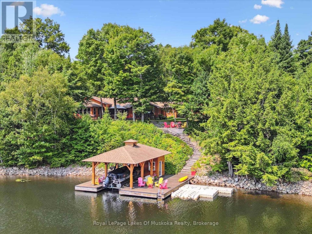 The discerning buyer will appreciate all this 4-season waterfront home or vacation property has to offer. Ideally located on a sheltered bay on Kawagama Lake with a southerly view across to Crown land and private parkland to the rear. Kawagama Lake is the largest lake in Haliburton and has access to 2 other lakes. It is noted for excellent water quality and lower cottage density. Crown land abounds in the area so all forms of recreation are easy to access. The fully renovated waterfront home is loaded with designer details and high end finishes. One level design with just two steps up to the guest bedroom area. White oak floors blend beautifully with the neutral colour palette throughout. An important mandate when renovating this home was that it be able to accommodate large groups of family and friends. The finished design reflects the successful execution of that mandate. Multiple entertaining areas include a family room, formal living and dining rooms, and a kitchen that just invites you to join the chef. It is the core of the home. Open to the family room with a 5x10 ft. island as well as a separate breakfast area, it is the ideal entertaining space. No expense was spared in equipping and finishing this space. A wood burning stone fireplace graces the living room while a Valor gas fireplace in the family room adds to the warm atmosphere. The primary suite is a private oasis with ensuite and year round sunroom. A double sided Valor fireplace offers cozy warmth to both areas of the suite. The oversized detached garage is filled with custom features for serious toy collectors plus a dedicated home office and an additional guest bedroom. Lakeside theres a solid steel pile dock with post and beam boat port. The dock is finished with treated ash decking. Beautiful granite stairs and paths wind through the property. Top notch mechanical systems are supported by an oversized automatic backup generator. Only 15 minutes from Dorset with easy year round access. (id:36535)