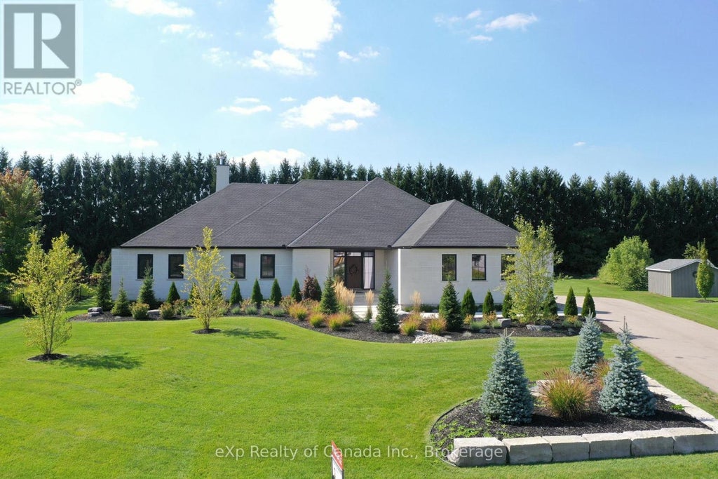 This luxurious 3,000+ square foot custom-built bungalow sits on a beautifully landscaped 1-acre lot in an exclusive neighborhood, offering a perfect balance of privacy, tranquility, and curb appeal while blending modern design with elegant finishes. Upon entering, you're welcomed by a bright, open-concept layout, accentuated by large windows that fill the home with natural light and 9' high ceilings that create an airy, expansive feel. The heart of the home is the high-end kitchen, complete with top-of-the-line appliances, custom cabinetry, and a large island perfect for meal preparation or casual dining. This space seamlessly flows into the dining and living areas, making it ideal for entertaining or family gatherings. The master suite is a private retreat, featuring large windows with serene views, a spa-like ensuite with a soaking tub, luxurious shower, dual vanities, and a spacious walk-in closet. Two additional bedrooms share a full modern bathroom, while a stylish powder room adds convenience for guests. The home also features a large laundry/mudroom, designed for practicality and organization, with built-in storage and access to the three-car garage. The garage is perfect for car enthusiasts or anyone needing extra storage, accommodating larger vehicles or a workshop space. Outside, the professionally landscaped grounds create a peaceful, private setting. Whether relaxing on the patio, hosting outdoor gatherings, or enjoying the serene views, the outdoor space complements the home's elegant design. With its blend of luxurious amenities, custom craftsmanship, and peaceful setting, this modern bungalow offers an unparalleled living experience in one of the area's most exclusive communities. Every aspect of the home has been designed to cater to both the aesthetic and practical needs of modern living, making it a rare find for discerning buyers. (id:36535)