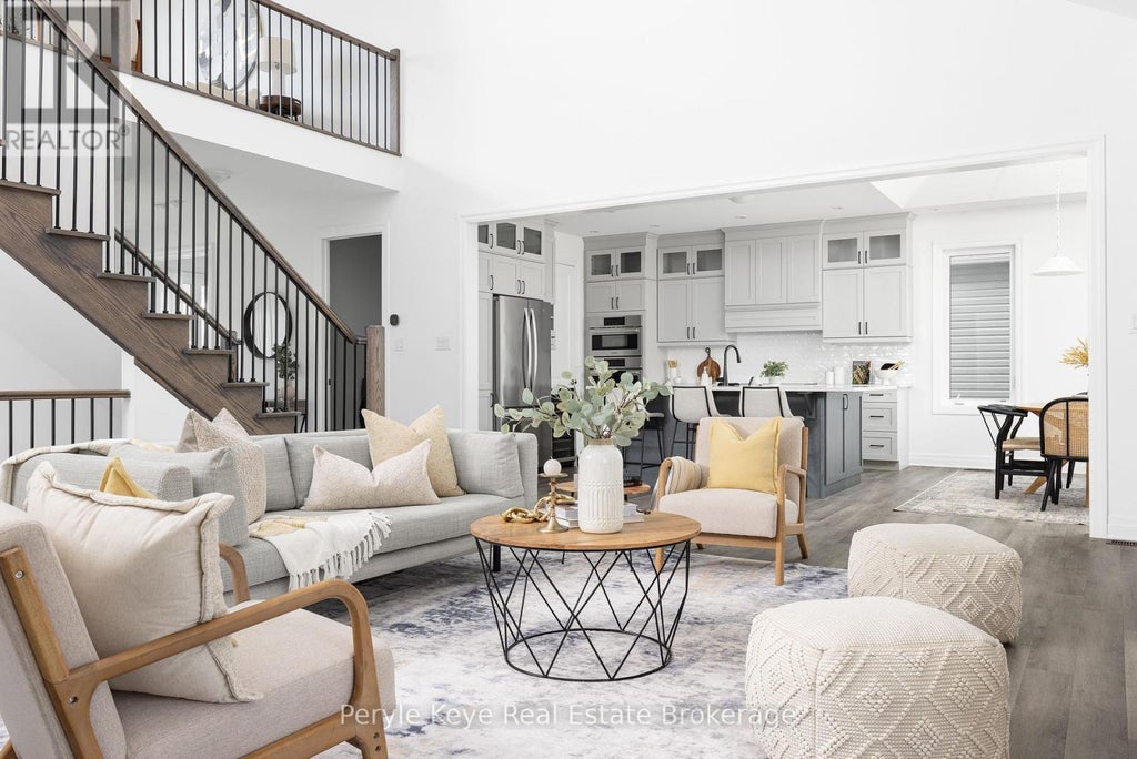 Framed with a forest view, elevated with upgrades, & set on one of White Pines most loved streets this rare walkout Maple Model delivers on every level. With over 2,600 sq ft of finished living space & a bright, unfinished walkout lower level, this 2024 bungaloft offers both immediate comfort & future potential. Enjoy the ease of true one-floor living, with the bonus of a lofted guest suite and a lower level complete with rough-in bath and plenty of room to expand. Inside, more than $100,000 in carefully selected upgrades set this home apart. The top-tier kitchen features full-height cabinetry, interior cabinet lighting, quartz countertops, a spacious walk-in pantry, & an entertainers dream: a statement-making oversized island that anchors the entire space. The open-concept layout flows into the living room, warmed by a striking gas fireplace & connected to a screened-in Muskoka Room w/ dual walkouts where forest views become part of everyday life. The perfect place to enjoy morning coffee or evening sunsets, this space extends both your seasons & your square footage. The main floor offers a generous primary suite w/ walk-in closet and ensuite, a second bedroom, a stylish 3PC bath, front office, main floor laundry, & upgraded interior doors throughout all designed for seamless, comfortable living. Upstairs, the loft features a bright second living area, a full bath, & a third bedroom ideal for guests, game nights & movies! With a covered front porch, forested backdrop, & thoughtfully upgraded finishes throughout, this is a home that was made to live beautifully. Because its not just about finding the right floor plan its the calm forest views, the comfort of over $100K in thoughtful upgrades, the convenience of community, and the quiet confidence that this home supports the way you want to live. The right home doesn't ask you to settle. It meets your lifestyle where its going. (id:36535)