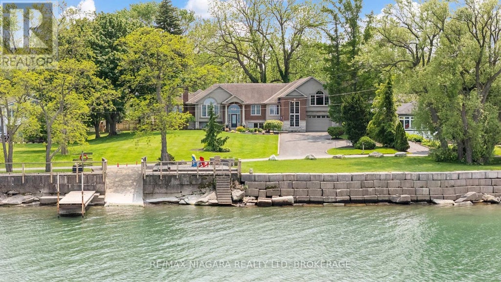 Discover your own slice of waterfront paradise with this thoughtfully designed 6-bedroom, 3-bathroom home that offers the ideal blend of luxury, comfort, and functionality. Step through the inviting foyer and ascend to the spectacular open-concept main floor, where soaring cathedral ceilings and gleaming hardwood floors create an atmosphere of warmth and elegance. Large windows frame stunning lake vistas, flooding the space with natural light throughout the day. The expansive sitting room flows seamlessly into the formal dining room, both showcasing the home's signature hardwood floors and cathedral ceilings. The heart of the home boasts a spacious kitchen designed for both everyday living and entertaining. Sliding doors from the kitchen open to the rear deck, offering easy access to the beautifully landscaped backyard sanctuary. The main floor houses 4 bedrooms, including a luxurious primary suite featuring a spa-like 5-piece ensuite complete with a relaxing soaker tub. A convenient 3-piece bathroom serves the additional bedrooms and guests. For added flexibility, a short staircase leads to the fourth bedroom and expansive office space that could easily be converted into a larger primary suite. The thoughtfully finished lower level features a spacious recreation room with wet bar, two additional bedrooms, a 3-piece bathroom, practical laundry facilities, and valuable storage space. A separate entrance provides convenient access to the mudroom and extended garage, perfect for multigenerational living arrangements. The property's crown jewel is the private lakeside dock, your personal gateway to endless summer memories. Whether you're soaking up the morning sun with coffee or gathering with loved ones for sunset celebrations, this waterfront retreat offers unparalleled relaxation and recreation opportunities, and the ultimate lakefront lifestyle on Lake Ontario's stunning shoreline. Luxury Certified. (id:36535)