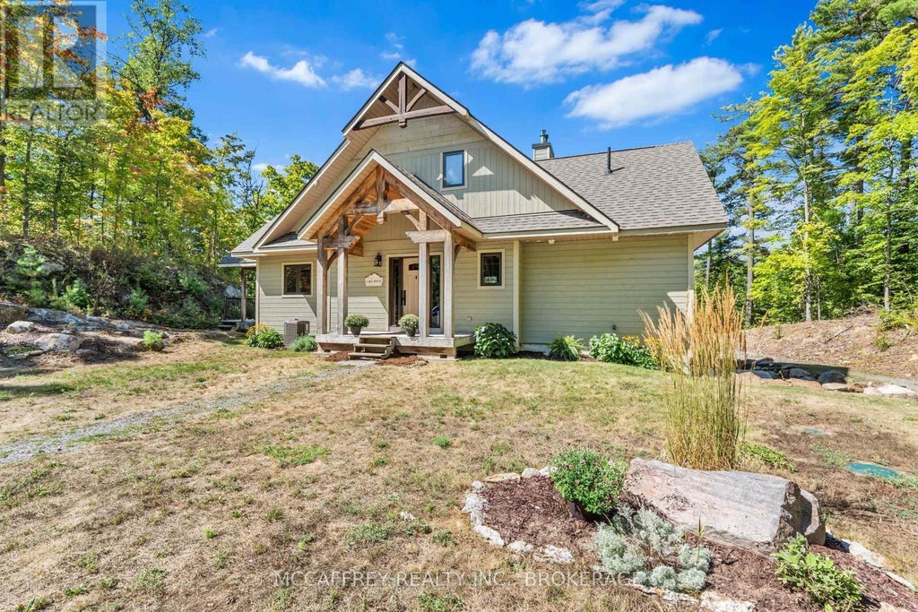 Welcome to this gorgeous timberframe waterfront retreat in Seeleys Bay, custom built in 2017. Tucked into a peaceful, 3+ acre country setting located directly on the Rideau Canal, this two storey Discovery Dream Home blends classic character with elevated finishes, beginning with soaring tongue and groove cathedral ceilings that crown the light filled main living area. Warm natural wood, expansive windows, and an airy, open concept create an inviting backdrop for everyday life and effortless entertaining. At the heart of the home is a magazine worthy kitchen by Hickory Lane Kitchen. Custom cabinetry provides exceptional storage and organization, while leathered granite countertops bring texture, durability, and understated luxury. A generous prep and serving area invites family and friends to gather, and the seamless flow to the dining and living spaces keeps the conversation going from breakfast to late night board games. Thoughtful design continues throughout with flexible main floor spaces that adapt to your lifestyle ideal for a home office, playroom, or quiet guest room. Upstairs, the Cape Cod charm continues with dormer accents and a lofted feel, offering a bedroom and a bright landing that can double as a reading nook or creative studio. Every detail reflects quality craftsmanship and a focus on comfort, from the solid finishes to the practical storage solutions you'll appreciate daily. Outdoors, enjoy tranquil views and room to relax, garden, fish, swim and entertain whether you're hosting summer barbecues or unwinding with a coffee on a crisp morning. Boat through the channel into Whitefish, minutes from marinas, parks and recreation on the Rideau. Convenient, easy commute to Kingston and Gananoque. Move In ready and impeccably maintained, this home delivers the best of waterfront country living: character without compromise in a setting that feels like home the moment you arrive. Discover your next chapter in a home that's as functional as it is beautiful. (id:36535)