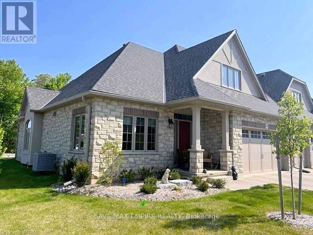 Stunning 3200sqft end-unit semi-detached condo open on 3 sides and looking onto green space in one of Tillsonburg's most sought-after communities. This beautifully designed home features 4 spacious bedrooms, 3 full bathrooms, and a finished loft perfect for a home office or studio. The custom gourmet kitchen boasts quartz countertops, premium cabinetry, and upscale finishes throughout. Enjoy soaring ceilings, an abundance of natural light, and triple French doors that lead to a private, landscaped backyard oasis overlooking a peaceful ravine. The luxurious primary suite includes a walk-in closet and a spa-inspired ensuite with heated ceramic flooring. The fully finished basement offers versatile space ideal for a home theatre, guest suite, or entertainment area. Energy-efficient and carpet-free, this home includes upgraded insulation, ENERGY STAR certification, and low-maintenance, high-end flooring throughout. Additional features include main floor laundry with inside access to a double-car garage, a double-wide French cobblestone driveway, and a private deck perfect for relaxing outdoors. Condo fees cover landscaping, lawn irrigation, and snow removal, offering a stress-free lifestyle. Located just minutes from Bridges Golf Course, scenic walking trails, downtown Tillsonburg, and the hospital, this rare end-unit offers the perfect blend of luxury, comfort, and convenience. (id:36535)