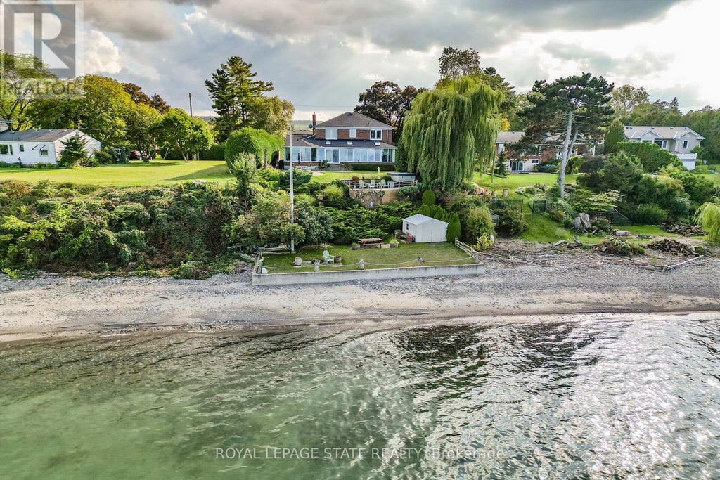 GRIMSBY BEACHFRONT WITH REMARKABLE LAKE ONTARIO AND GTA SKYLINE VIEWS Welcome to an exceptional private beachfront home in Grimsby, where postcard-perfect Lake Ontario and GTA skyline views are a daily reality. The traditional center hall plan leads you into an elegant living room, complete with a cozy gas fireplace and unobstructed water views. The spacious kitchen features an abundance of cabinetry, while the breathtaking 500 sq ft, four-season sunroom serves as the home's centerpiece, offering wall-to-wall windows and ever-changing vistas.Upstairs, the primary bedroom suite is a private sanctuary with a walk-in closet and a three-piece ensuite, which features a custom glass shower and stunning views. Two additional, generous bedrooms and a four-piece bathroom complete the upper level. Downstairs, the finished basement provides a custom wine cellar, a large recreation/media room, and a built-in wet sauna with a two-piece bathroom. The true masterpiece is the meticulously landscaped backyard, which offers multiple entertaining areas, including a patio, a hot tub, and your own private beachperfect for swimming, kayaking, or paddleboarding.This lakeside retreat also includes a single-car garage, double-wide parking for four cars, and easy access to the QEW, YMCA, and multiple schools. Come experience picturesque sunsets and a remarkable waterfront lifestyle. (id:36535)
