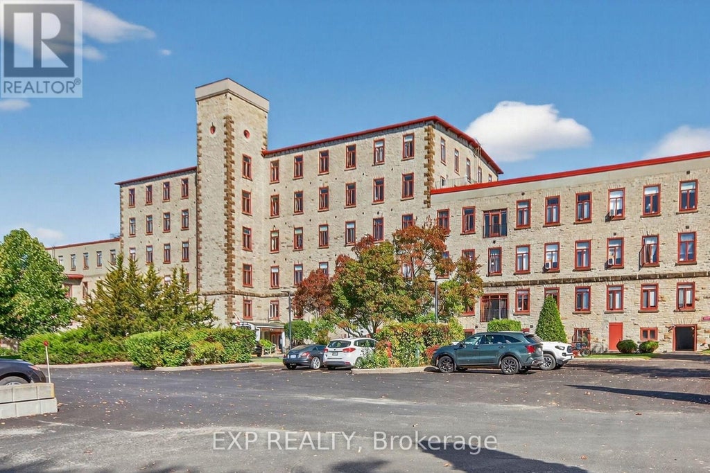 Welcome to Unit 408 at Millfall Condominium. This stunning one-bedroom plus den, one-bath suite faces west, offering beautiful views of the Mississippi River. Kitchen is a chefs dream, featuring a spacious wood-topped island with ample seating, stainless steel appliances, granite countertops, and a full wall of built-in dining cabinetry. Open-concept dining and living area allows for flexible layouts, highlighted by engineered hardwood floors, soaring 10-foot ceilings, and sunsets framed by large windows. A sleek electric fireplace adds warmth and charm to the living room. Primary bedroom is designed with a full wall of closet space, while the versatile den makes a perfect office, craft room, or guest nook. Life at Millfall extends beyond your condo walls. Residents enjoy beautifully landscaped grounds along the river, complete with kayak storage, a gazebo for social gatherings and barbecues, and ample parking for both owners and guests. Originally a bustling textile mill in the 1800s, this heritage building was thoughtfully converted to condos in 1985, preserving its historic character. Today, Millfall offers exceptional amenities, including an exercise room, workshop, library, recreation room, storage lockers, and a guest suite available to rent. For those who love to explore, downtown Almonte is just a short stroll away, filled with cafés, restaurants, and unique boutiques. Outdoor enthusiasts will appreciate the nearby Ottawa Valley Recreational Trail. Discover for yourself why Millfall is such a vibrant, welcoming community - there's truly something here for everyone. (id:36535)