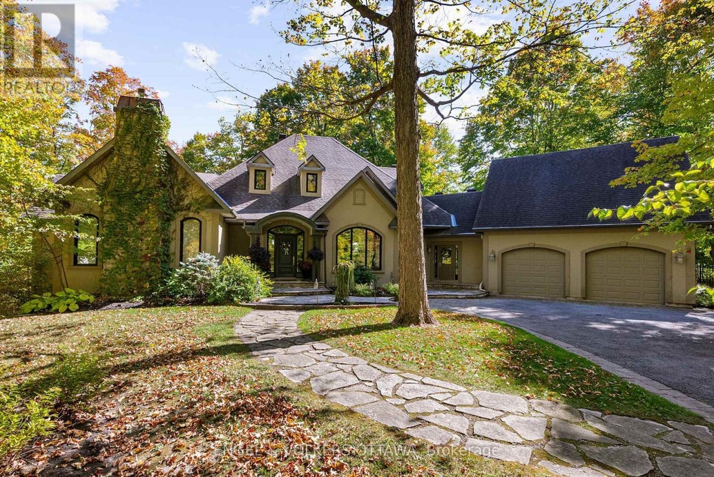 Designed by renowned architect Gerhard Linse, this award-winning home blends timeless elegance with modern luxury. Set on a private 2-acre lot in a prestigious estate enclave, this exceptional home offers a peaceful retreat just minutes from Kanata North and . Enjoy a breathtaking living room with panoramic windows and a new deck overlooking the lush backyard with a heated saltwater pool, hot tub, and gardens. The chef's kitchen features custom cabinetry, a gas range, built-in pantry, and bistro-style dining area.The main-floor primary suite is a spa-inspired retreat with marble finishes, a soaker tub, double vanity, and glass shower. Upstairs, two bedrooms share a stylish Jack & Jill bath.The walk-out lower level adds a bedroom, games and theatre rooms, wood-burning fireplace, and new full bath. Major updates include new furnace, triple-pane windows, reverse-osmosis water treatment, high-end bathroom renovations and much more. Incredible location moments to the sought-after Kanata North - Ottawas Premier Tech Hub, enjoy proximity to leading tech companies such as Nokia, Mitel, Ciena and Cisco. Top-rated schools, both public and private are minutes away: Kanata Montessori School, March Academy, Blue Sky School, Peak Center Academy, Kanata Academy, St.Isidore Catholic School and many more. ****Visit the listing website for full details and list of updates.**** (id:36535)