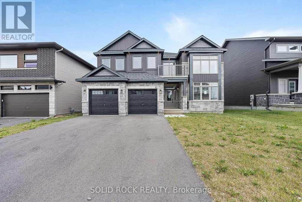 Welcome to 92 Esban Drive, a stunning Phoenix Homes "Annapolis" model in the sought-after community of Findlay Creek. Situated on a generous 50-foot lot, this beautifully designed home offers over 4,200 sq ft of elegant living space with thoughtful upgrades and an ideal layout for family living and entertaining. Grand spiral staircase, and soaring vaulted ceilings in both the living room at the front and the sun-filled solarium at the back. The spacious layout includes a separate dining room, a private main-floor study, and an open-concept family room with a cozy gas fireplace. The gourmet kitchen is a chefs dream, complete with a large walk-in pantry, extended cabinetry, a generous island with breakfast bar seating, and seamless flow into the bright breakfast area. Upstairs, you'll find four large bedrooms and a loft, offering plenty of space for every member of the family. The primary suite is a luxurious retreat with its own gas fireplace, a large walk-in closet, and a spa-like 5-piece ensuite. Bedroom 2 features a private front-facing balcony, while Bedrooms 3 and 4 are connected by a convenient Jack and Jill bathroom. Additional highlights include a double car garage with inside entry, a second gas fireplace in the family room, and plush wall-to-wall carpet on the upper level. Located close to parks, schools, shopping, trails, and just minutes from the airport, this impressive home offers the perfect combination of size, style, and location in one of Ottawa's most desirable neighbourhoods. (id:36535)