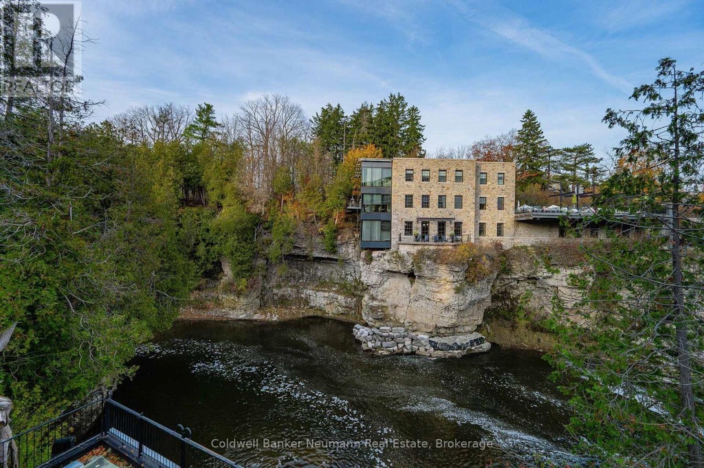 Welcome to the Elora Mill Residences where luxury living meets the charm of one of Ontarios most picturesque villages. This stunning, never-lived-in suite offers a bright, spacious layout with sweeping views of the Grand River and the historic Elora Mill. Step outside your door and youre right on the Elora Cataract Trail, just minutes from downtown Elora's boutique shops, acclaimed restaurants, and vibrant arts scene. Enjoy morning walks by the river, an afternoon coffee on Mill Street, or an evening out at one of the villages renowned eateries all just steps away. Residents also enjoy access to exceptional building amenities, including an outdoor pool and rooftop garden terrace, fitness and yoga rooms, a party and meeting lounge, and private parking. Every detail has been designed for comfort, connection, and easy living. This is your opportunity to experience the best of Elora modern living surrounded by natural beauty and small-town charm. (id:36535)