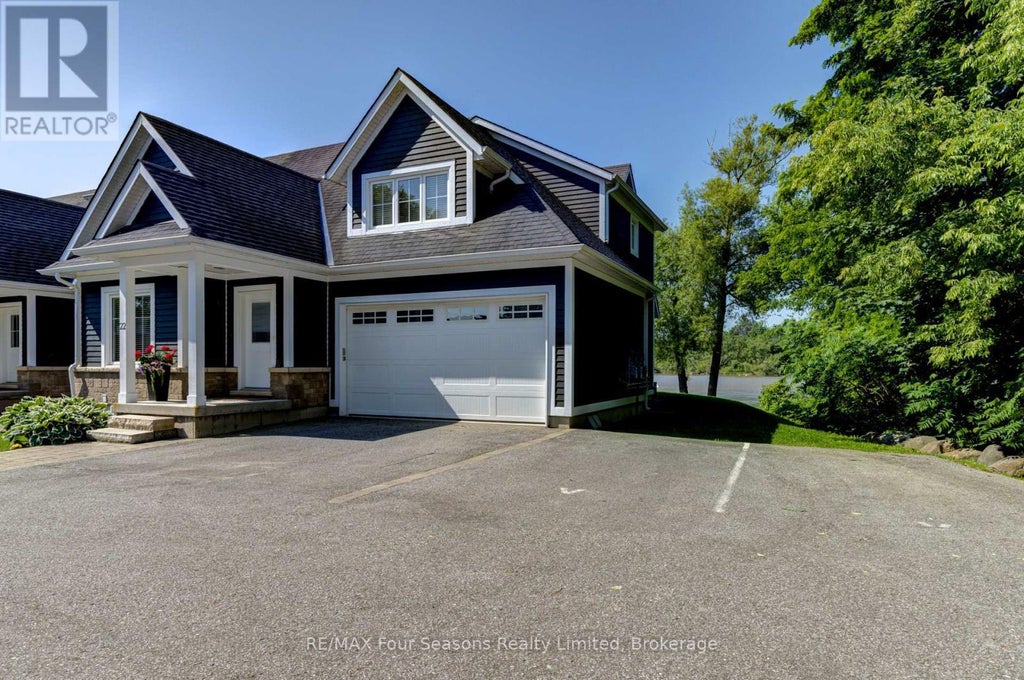 THE MILL POND in the heart of Thornbury presents a great waterfront opportunity. This 4 bedroom bungaloft home is the best location in this small enclave of homes where nature meets peaceful contemporary living. This million dollar unobstructed WATERFRONT VIEW offers peace and tranquility while watching the activities of swans, ducks, egrets, beaver, otters and more. Yet only a few minutes walk to the main street of Thornbury with it's boutique shops, art galleries and restaurants. Stroll down to the marina and Bayview Park or the fish ladder on the damn. For skiers it's only a 5 minute drive to Georgian Peaks and 15 minutes to Blue Mountain and other private ski clubs. This end unit bungaloft boasts the best location on the MILLPOND and the largest floorplan with a double car garage. MAIN FLOOR PRIMARY bedroom with ensuite and heated floors has large windows to take in the view of the water. A further bedroom on the main level can be an office or den. Open plan main floor living with beautiful hemlock flooring, a custom kitchen with granite counters, stainless steel appliances and island bar. Dining area and living room share soaring cathedral ceilings and a gas fireplace for those cold winter evenings. French doors open to the patio area with beautifully landscaped gardens. The lofted second level offers two further bedrooms, a large four piece bathroom and a sitting area overlooking the main level. Thoughtfully planned and constructed with extra insulation in the living room and master bedroom walls, energy efficient windows, HRV system, on demand hot water heater, The attached double car garage is insulated and has inside entry door. A shared dock offers you a place to watch beautiful s a place sunrises as well as access for your kayaks/canoes. On site rack for your canoes/kayaks. (id:36535)