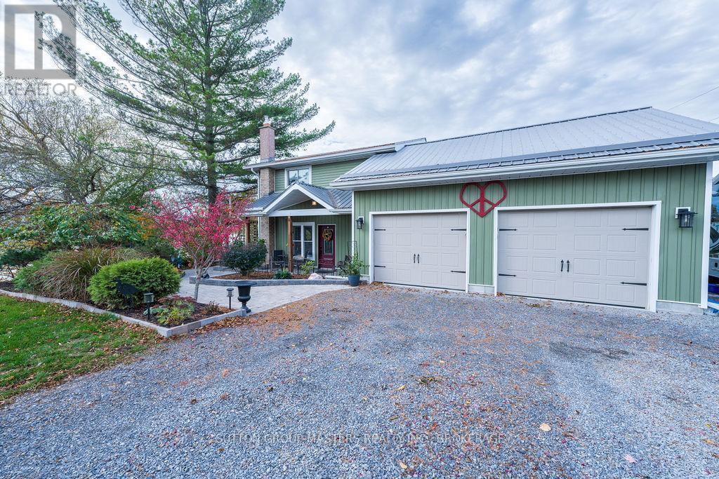 Nestled along the peaceful shores of Colonel By Lake, this enchanting 2-bedroom + den, 2-bathroom home blends rustic charm with modern elegance. Set on approximately 0.43 acres with 123 feet of waterfrontage, this property offers a serene retreat just minutes from town amenities-only an 8-minute drive away. Step inside and be greeted by the warmth of wide-plank pine floors, a cozy propane fireplace, and an open-concept kitchen designed for entertaining, featuring a large island and stunning water views through expansive windows. The natural light and panoramic views of the bay create an inviting, relaxed atmosphere throughout. Upstairs, the spacious primary suite spans the entire half-storey, offering a private sanctuary with a walk-in closet, ensuite bathroom, a generous sitting area, and sliding glass doors onto your private balcony- perfect for quiet mornings or unwinding after a long day. Outside, enjoy the tranquil waterfront lifestyle with plenty of space to relax, entertain, or launch a kayak from your shoreline. The attached double garage adds convenience, while the property's rustic-meets-modern design provides timeless appeal. With only 24 homes in this exclusive lakeside enclave, opportunities like this are rare. Whether you're a couple seeking a peaceful retreat or a small family looking for a place that feels worlds away yet close to everything - this Colonel By Lake gem is ready to welcome you home. (id:36535)