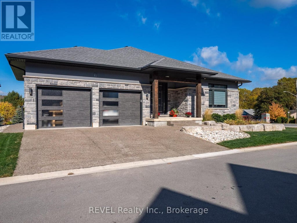 Welcome to this stunning custom-built bungalow nestled on an exclusive cul-de-sac of only 9 homes in the heart of St. David's, one of Niagara-on-the-Lake's most coveted communities. Blending sophisticated architecture with contemporary comfort, this home offers the perfect balance of elegance and lifestyle.Step inside to discover a bright open-concept design highlighted by soaring ceilings,designer lighting, and expansive windows that flood the space with natural light. The gourmet kitchen features premium appliances, quartz surfaces, and a stylish centre island-perfect for entertaining or everyday family gatherings. The adjoining dining and great room spaces flow seamlessly to a covered terrace, ideal for enjoying Niagara's picturesque sunsets.The main floor offers two spacious bedrooms, including a serene primary suite with a spa inspired ensuite bath, freestanding tub, glass shower, and dual vanities. The walkout lower level expands the living space with two additional bedrooms, a full bath, and an impressive golf simulator and theatre room, perfect for year-round recreation and relaxation.Outside, thoughtful landscaping, a double garage with modern doors, and clean architectural lines create exceptional curb appeal.Located just steps from The Grist restaurant and minutes from Niagara's finest wineries,golf courses, trails, and Old Town's boutique charm, this property embodies the Niagara-on-the-Lake lifestyle-a perfect blend of luxury, leisure, and location. More than a home, this is a lifestyle statement. (id:36535)