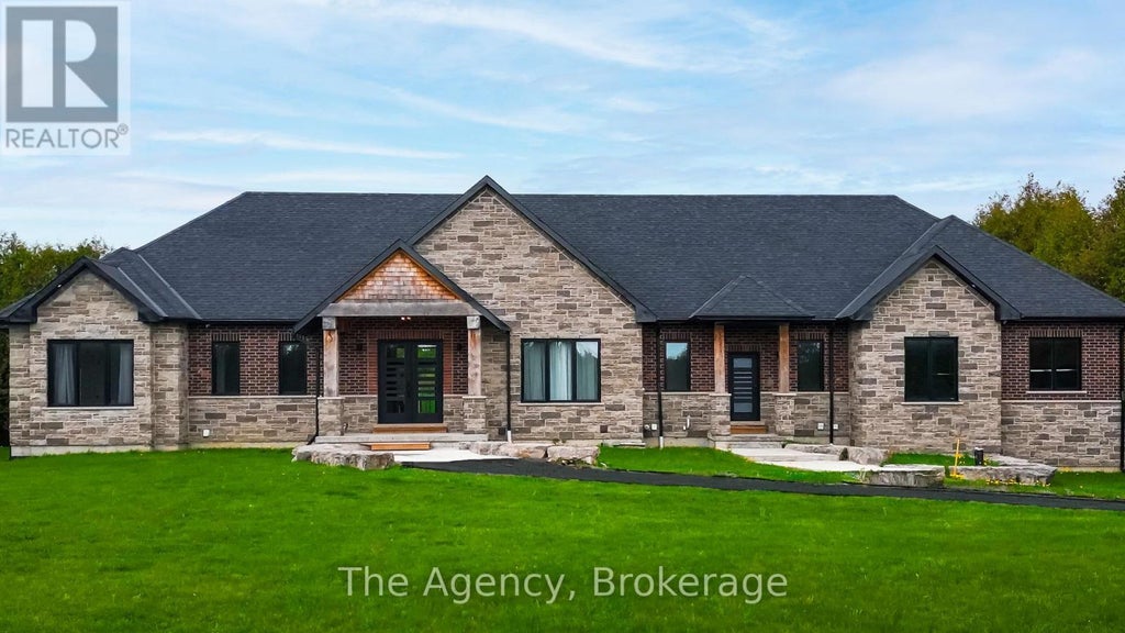 A rare opportunity to own this stunning, custom-built home, offered for the first time! Boasting over 5,000 sq. ft. of living space, this exceptional property is conveniently located on Hwy 10 with natural gas service. The exterior showcases timeless stone and brickwork, complemented by striking Douglas fir beams inside. Step into an inviting interior with soaring 10-foot ceilings throughout, elegant 8-foot doors, and a seamless open-concept layout. The full chef's kitchen, complete with a double island, flows effortlessly into the expansive deck, perfect for indoor-outdoor living. The primary suite offers a spa-like ensuite and two walk-in closets. This home features 3+2 bedrooms and 3.5 baths, with a lower level boasting 9-foot ceilings, an in-law suite with a separate entrance, a gym, and in-floor heating throughout. The heated and insulated garage is designed for versatility, featuring high ceilings ideal for a lift, a Tesla charger, and a backup generator. The property is enhanced by 20 years of meticulous landscaping, a mature cedar tree line, power-gated entry, additional parking pads, an invisible fence with a dedicated dog run, and a breathtaking spring-fed river teeming with speckled trout. An extraordinary home combining luxury, comfort, and nature, don't miss this one-of-akindopportunity! The driveway has been recently paved. (id:36535)